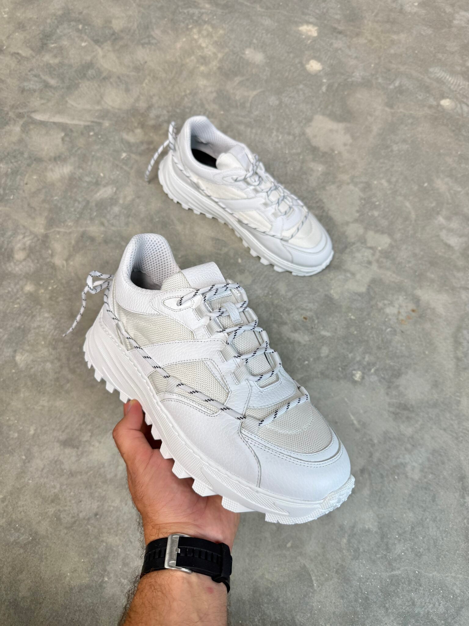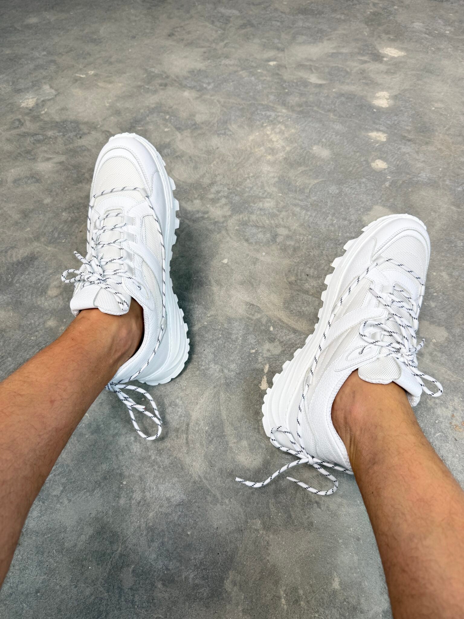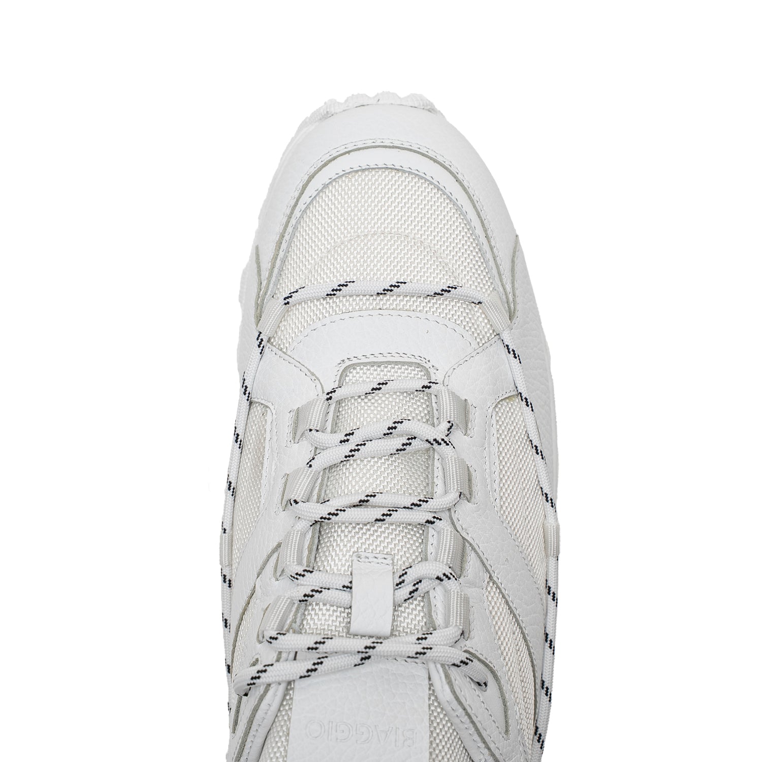 - Partea superioară: piele naturală alba de vițel si material textil alb