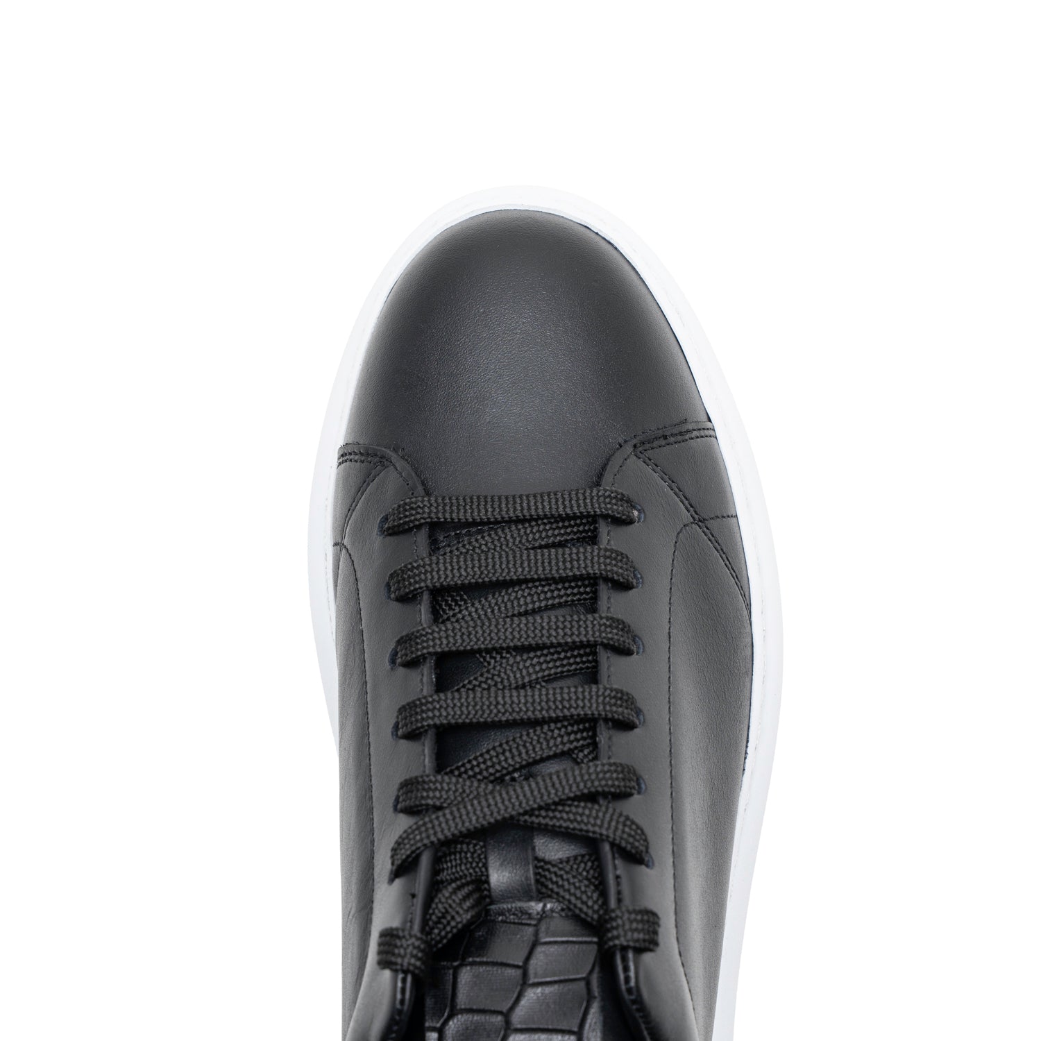 - Partea superioară: integral piele naturală neagră cu detalii piele naturală tip croco.