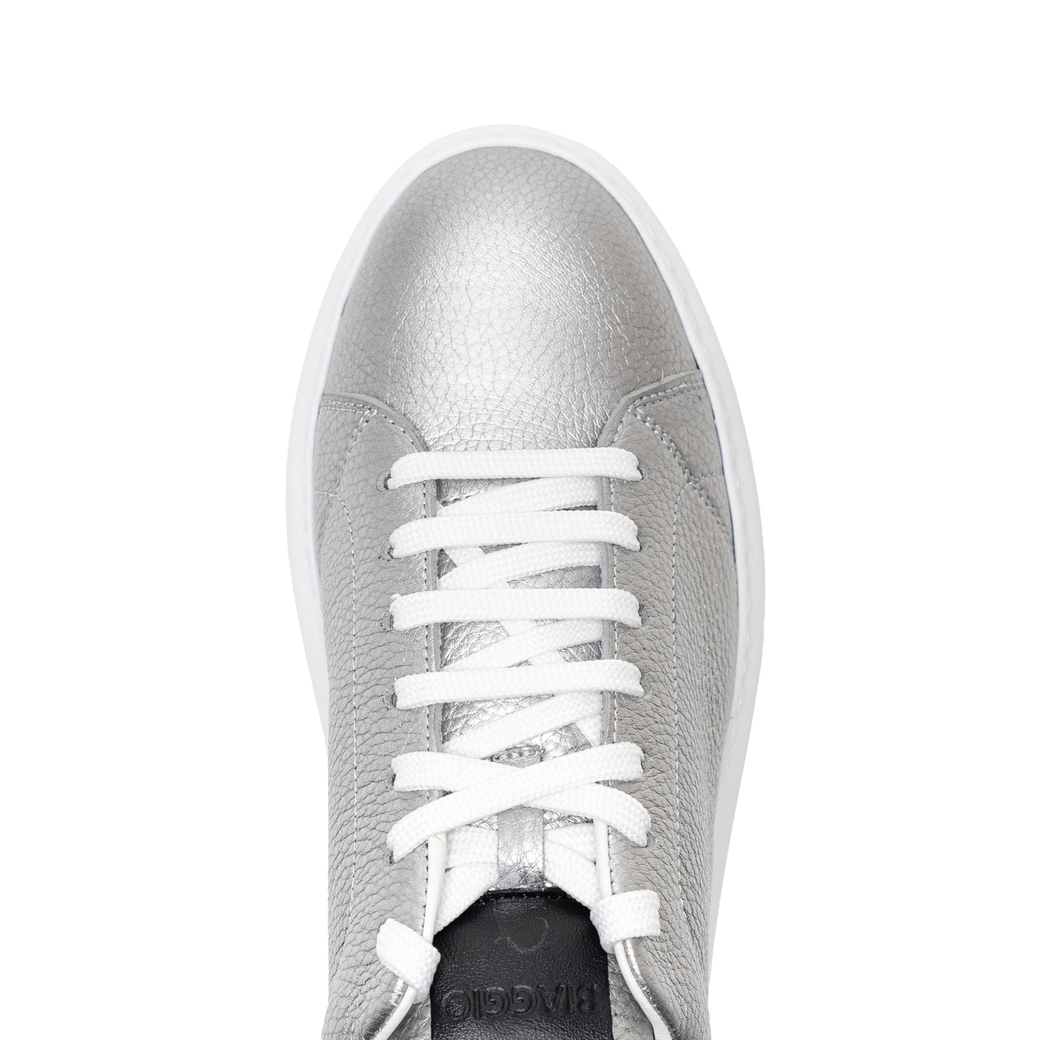 - Partea superioară: piele naturală botalata argintie de vițel, detaliu piele naturală botalata neagra. Partea interioară piele naturală vițel + material textil
